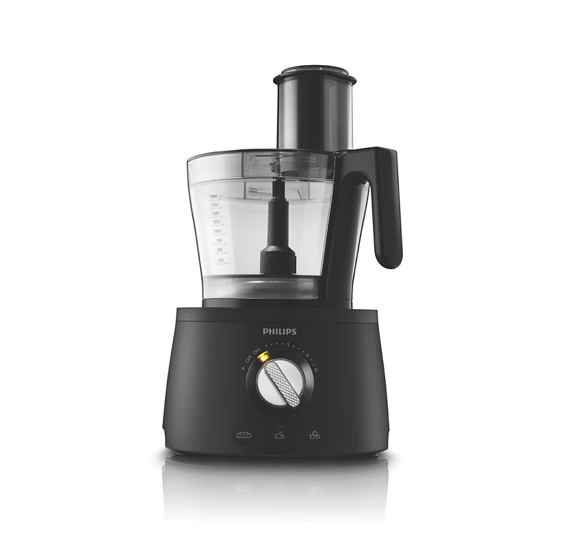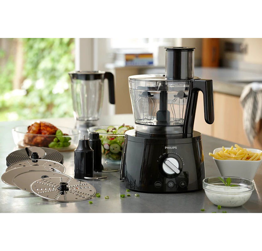محضرة طعام متعددة الوظائف من Philips تجمع بين التقطيع، الخلط، العجن، الخفق وعصر العصائر في جهاز واحد قوي وعملي لجميع احتياجات المطبخ.