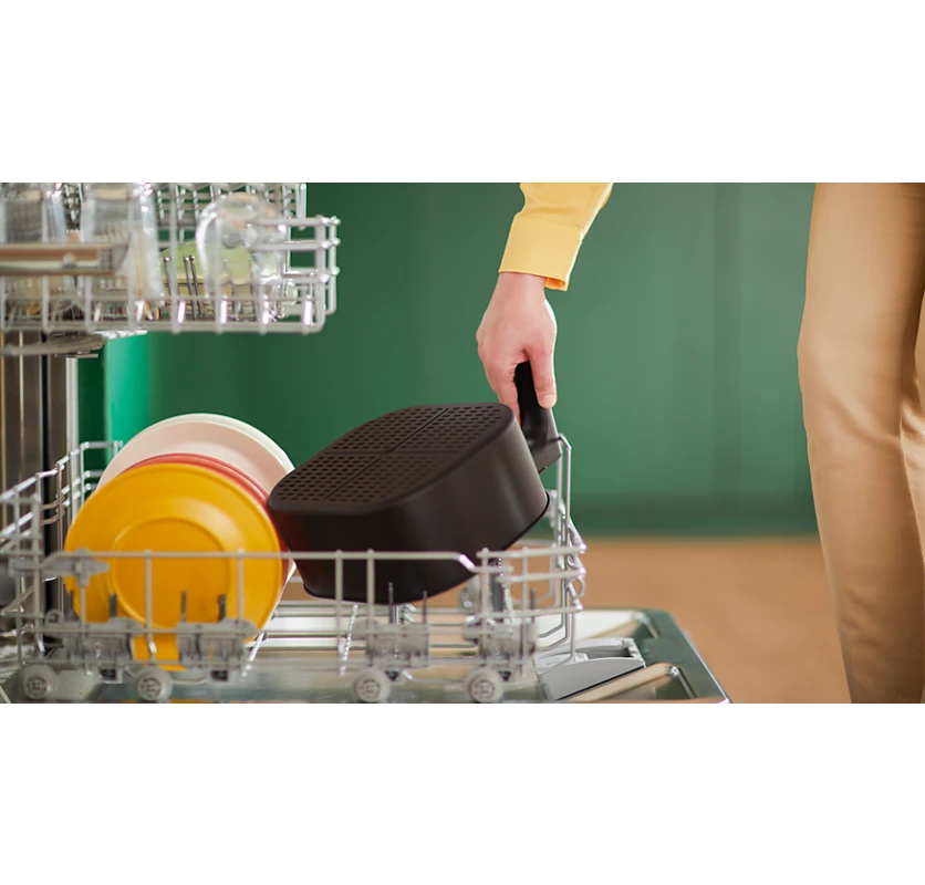 التنظيف: جميع الأجزاء القابلة للإزالة آمنة للغسل في غسالة الأطباق، والسلة مزودة بطبقة مانعة للالتصاق (QuickClean).
